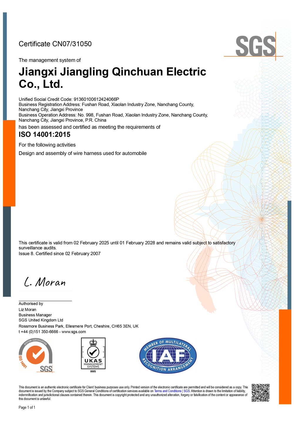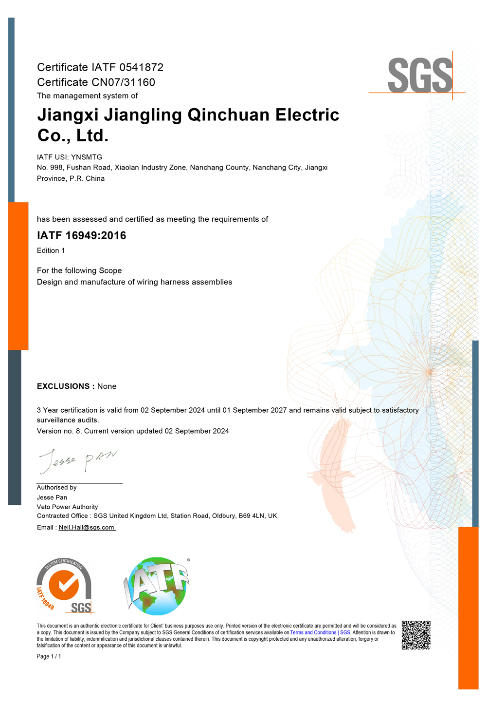 公司成立于1994年,2024年由江西江铃汽车集团实业有限公司与江西利得云汽车科技有限公司重组构成,注册资本4600万元。公司坐落于江西省南昌市南昌县小蓝工业园,是一家研发、生产、销售汽车线束的专业企业。主营产品为传统乘用车、商用车及新能源车型全车系线束,具有自主研发设计能力。公司拥有小蓝工业园和小蓝汽车零部件产业园两个生产基地共计约40000平米,现有员工1200余名,目前具备配套年产35万辆整车线束的生产能力,2024年营业收入超11亿元。